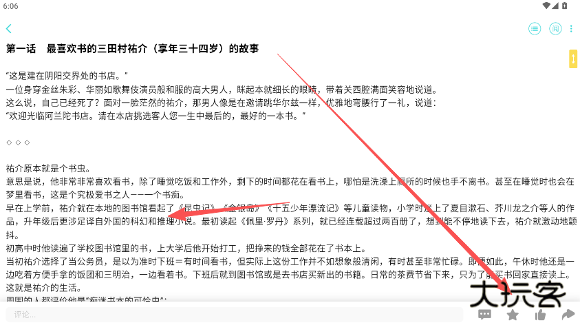 4、来到小说阅读的文字内容部分,向下滑动是查看最新章节,左右是小说章节翻页。