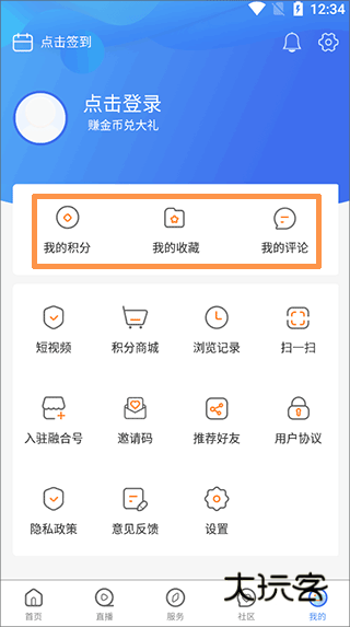 2、然后在我的一栏可以看到自己的积分、收藏和在社区的评论等内容;