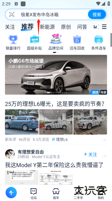 2、接下来回到首页点击上方的搜索框输入汽车之家2024年最新汽车报价进行搜索。
