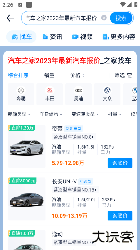 3、以下就是搜索出来的结果,在这里可全面查询车价。