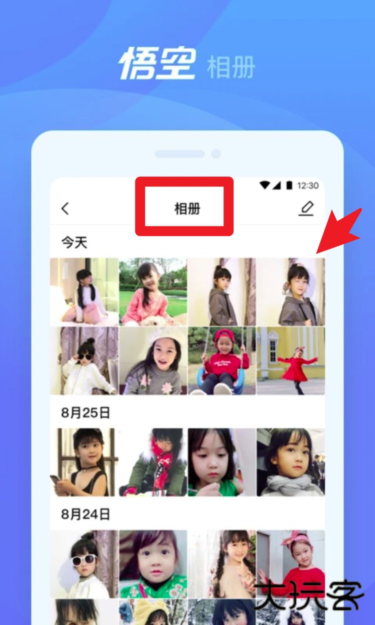 4、点击「相册」模块可查看孩子日常拍摄的照片,依照日期自动分类,支持浏览、删除与同步保存至家长设备中。