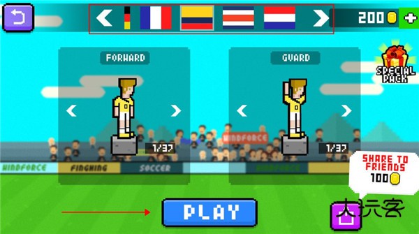 2、多样化角色与场景:数十种角色可供解锁,每个角色外观、姿态、动作都独一无二,球场风格涵盖草地、沙滩、机械场等不同主题。