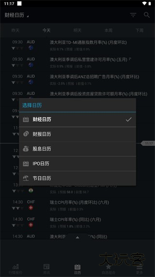 我们提供了五种不同的日历:财经日历、财报日历、股息日历、新股日历和节日日历;