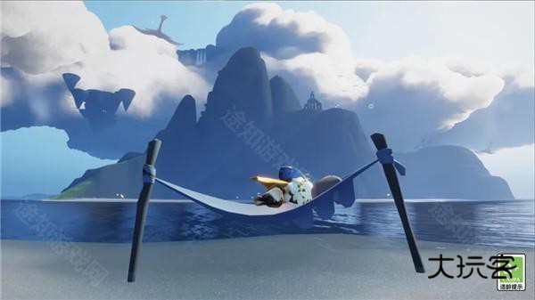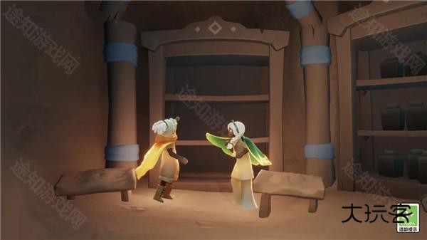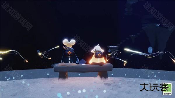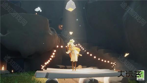 3、找到黄色人影,与它们互动 收集“光之翼”,我们的 飞行技能就可以得到 升级――斗篷背后 星星的数量就代表我们的飞行级别。