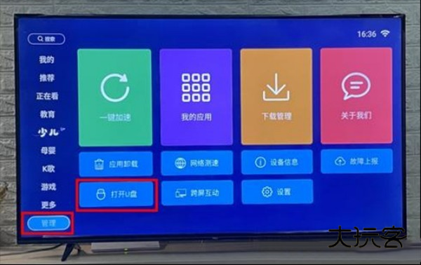 7、上传失败了也没关系,在欢视助手的管理界面,点击【打开U盘】,然后点击【安装包】,就能看到刚才上传的安装包,进行安装即可