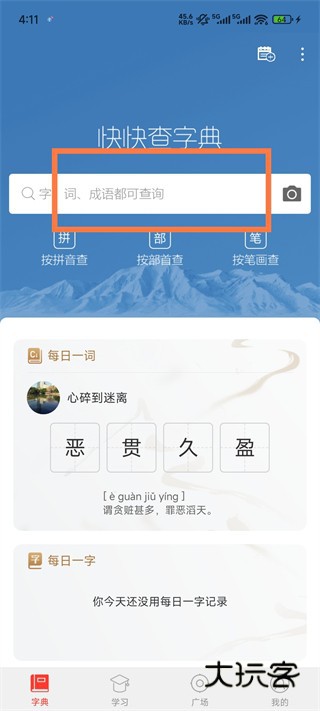 1、打开快快查汉语字典App点击搜索