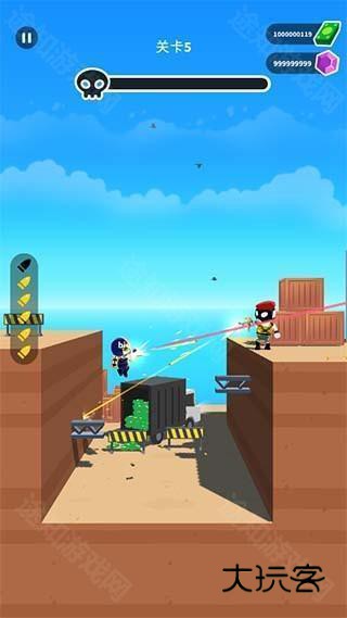 4、子弹可以反弹、射击炸药桶可以爆炸等,只要遵守游戏规则,场景中的所有资源都可以利用。