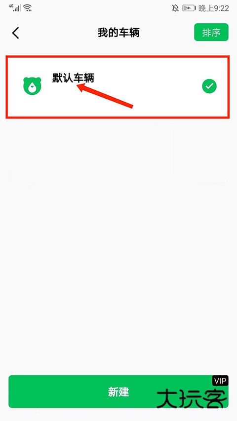 2、进入我的车辆界面,选择【默认车辆】选项;