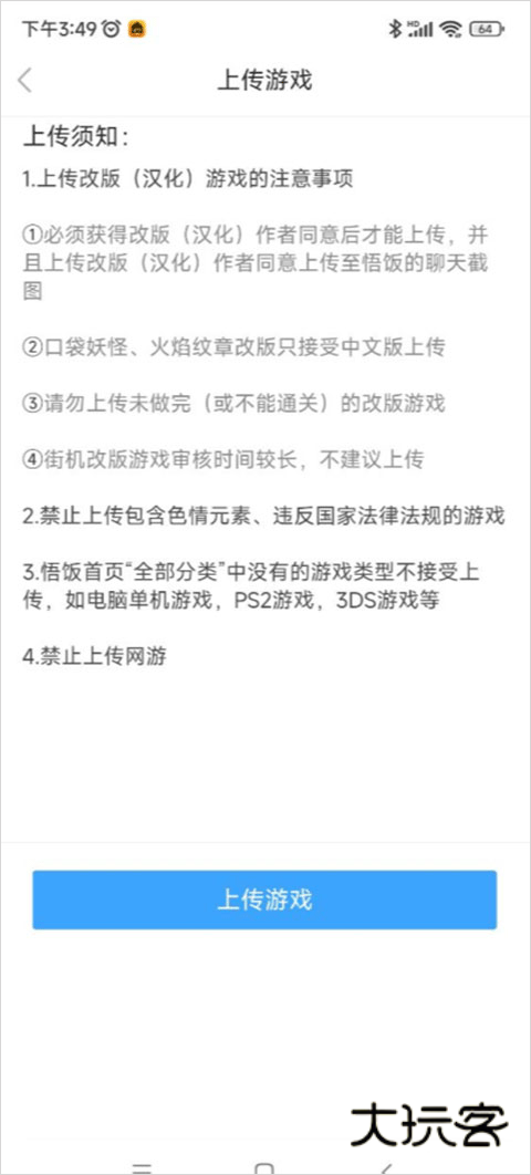 2、然后在页面的下方,点击上传游戏。