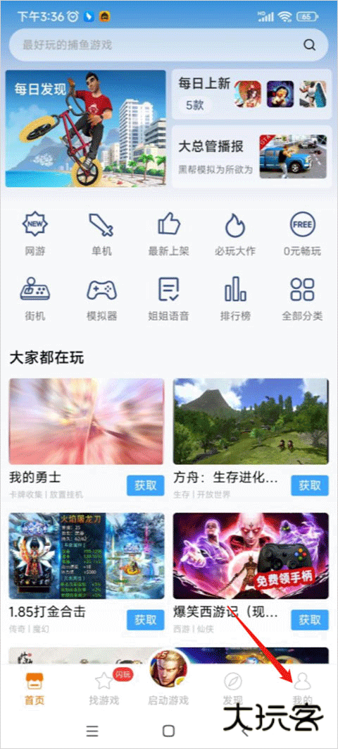 1、首先进入悟饭游戏厅主界面,点击下方我的。