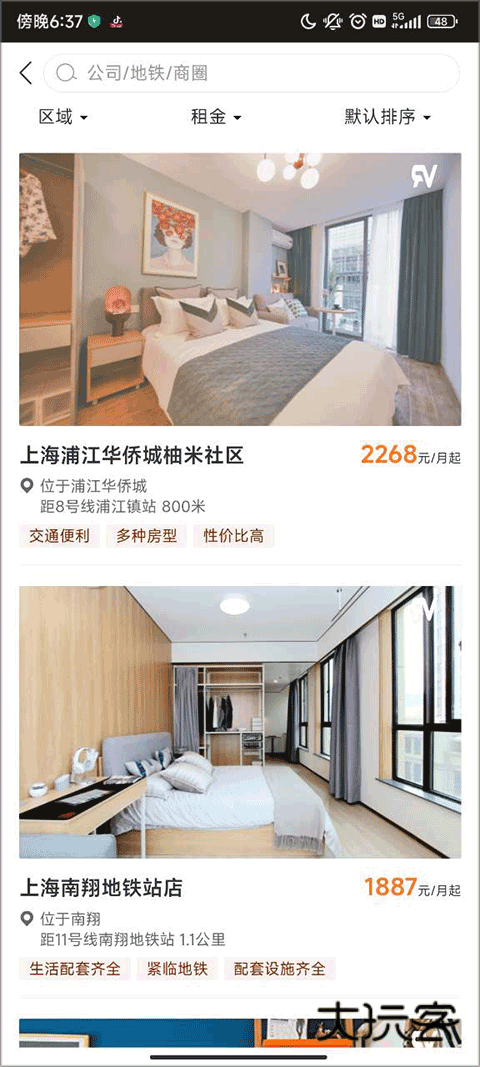 2、你可以查询到附近的房源,并且可以选择区域和租金价格。选择好你需要一个你需要的房子并点击进去。