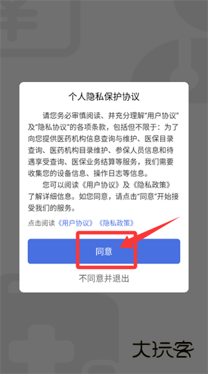 1、点击个人隐私协议弹窗中的同意按钮,完成服务条款确认步骤。