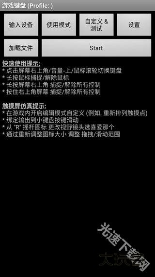 1、打开虚拟键盘手机版,上面标明了快速使用提示和触摸屏仿真提示;