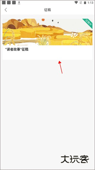 2、页面只有一个活动“读者故事”征稿,点进去这个活动。