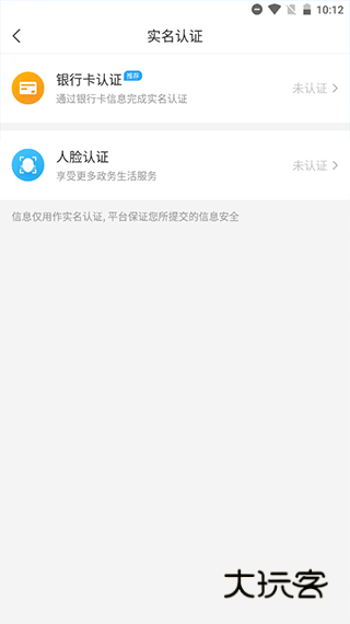 2、app推荐使用银行卡认证,点击未认证进行认证。