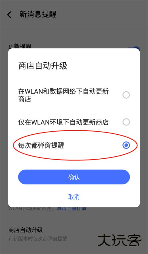 4、然后选择【每次都弹窗提醒】即可自动提醒更新。