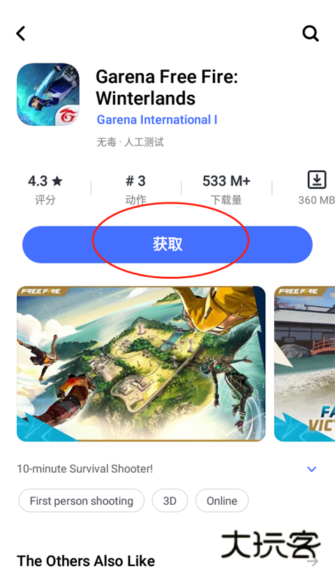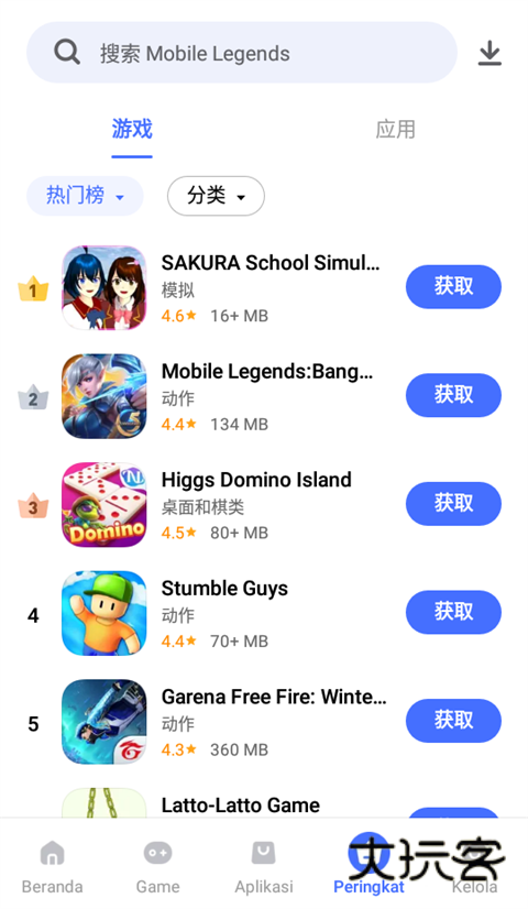 3、然后任意选择一款手游并点击【获取】即可进行下载。