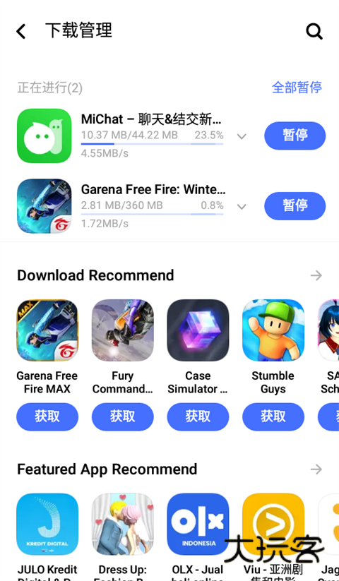 5、最后在【下载管理】界面内可查看自己正在下载的手游/应用。