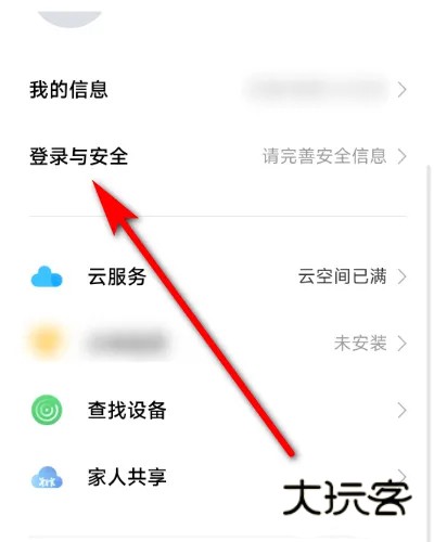 2、在打开的帐号详情页面中点击【登录与安全】