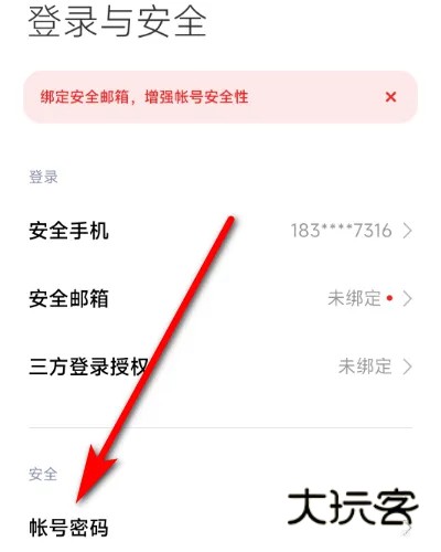 3、接着在打开安全中心设置页面中点击【帐号密码】即可设置