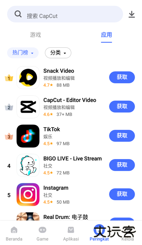 2、如上/下两图,各自是游戏榜单和应用榜单。