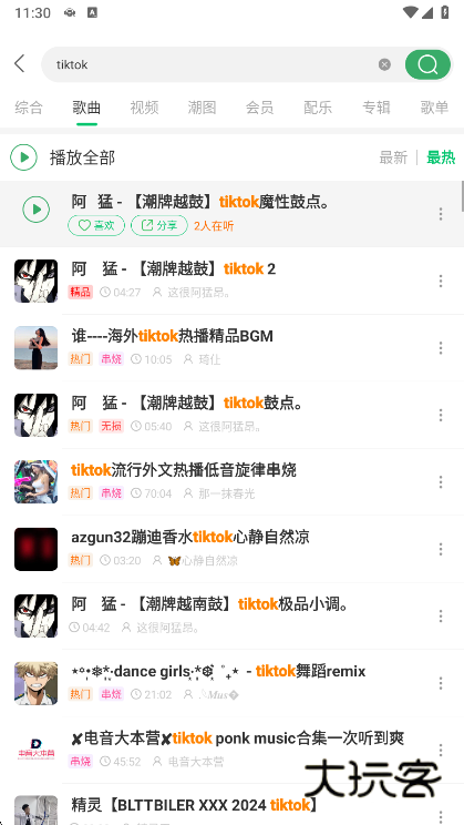 3、搜索出来的歌曲都是非常全面的,您可以任意收听