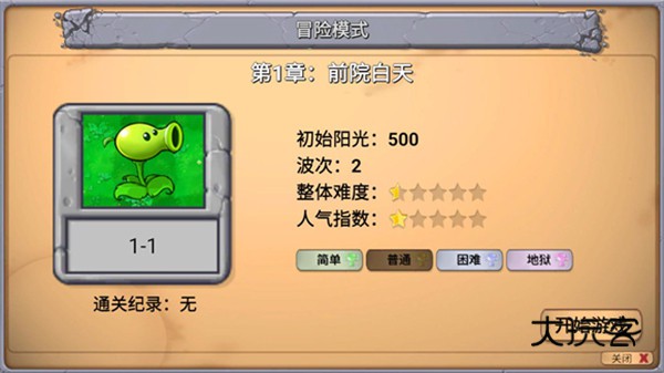 2、点击冒险模式后可以选择想要游玩的关卡和难度。