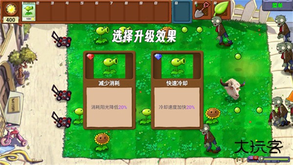 6、击败僵尸有几率会掉落钻石,钻石可以用来升级植物获得各种效果。