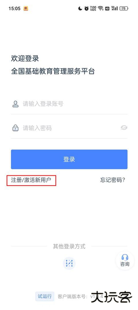 一、在本站安装学有优教app,进入到登录页面,在登录界面中点击【注册/激活新用户】;