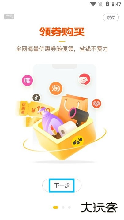 ・领券购买,全网海量优惠券随便领,省钱不费力,点击【下一步】;