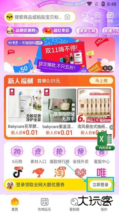 2、注册蜜源享优惠,*下单相当于不用钱,新人免单专区数十款宝贝每日更新,0元也能领回家!!!