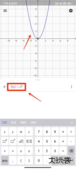 4、接着直接在加号图标右侧进行输入,这里我们输入f(x)=x?函数,输入之后可以看到图中出现了相应的图像;