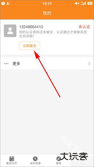 2、登录成功后进入APP,点开“我的”,可以看到状态是“未认证”,然后点击“立即提交”;