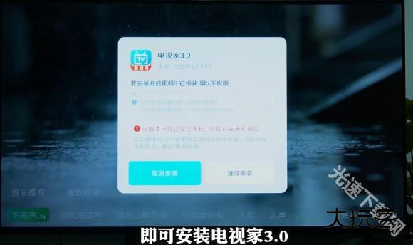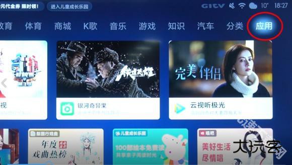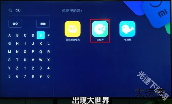 3、进入应用后选择第二行第一列文字,遥控器向下按6次,即可安装电视家
