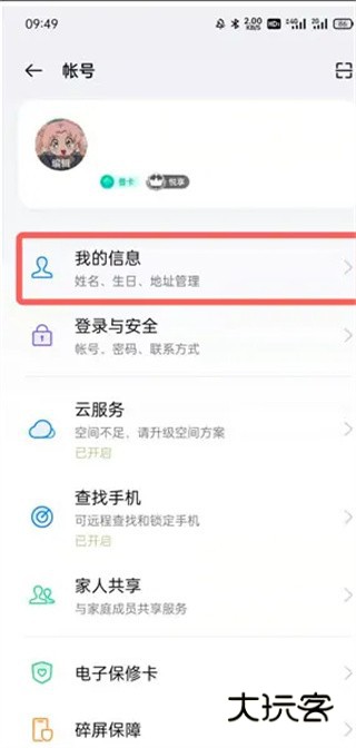 2、打开Oppo手机中的【设置】后,在最上方点击自己登录的【账号】进入账号管理设置;