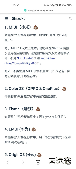 安卓11及其以上系统只需根据步骤指南通过无线调试启动Shizuku,步骤指南中有针对常用厂商机型的可能遇到的问题的解决方案