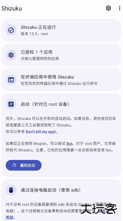 如果您已经root您的设备,直接通过shizukumanaer启动即可。