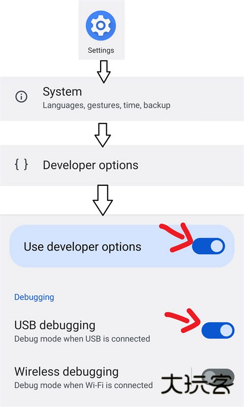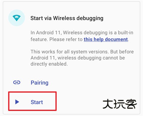 通过无线调试启动适用于 Android 11 或以上版本。这种启动方式无需连接电脑。由于系统限制,每次重新启动后都需要再次进行启动步骤。