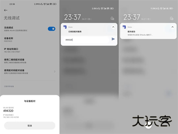 7、不然配对码可能会没法正常输入,然后点击配对,会提示我们打开开发者选项,启用开发者模式后我们按照引导进入开发者选项设置中,确认开启USB调试和无线调试,引导里说MIUI可能还需要关闭手机管家的扫描功能,开启无线调试后点击使用配对码配对设备,记住弹出得配对码,在通知中输入正确得配对码完成配对;