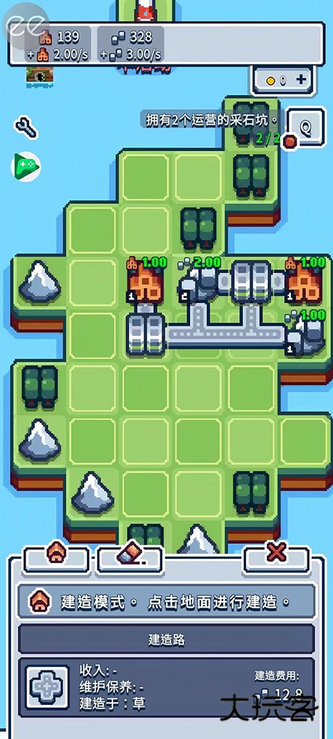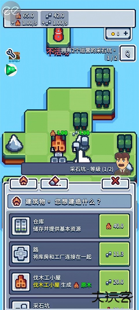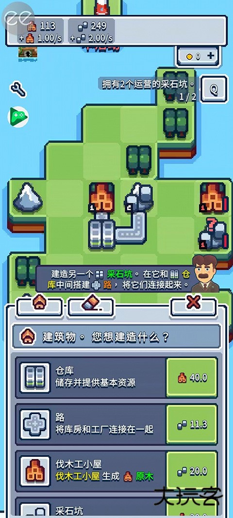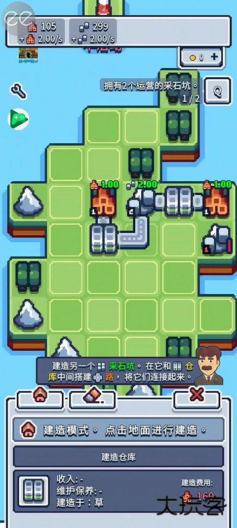 1、玩这个游戏想要升级就必须发展经济链,新手就从建造一个完整采石矿开始,并且还要不断的给采石坑升级才能更好的运营采石矿解锁之后的关卡。