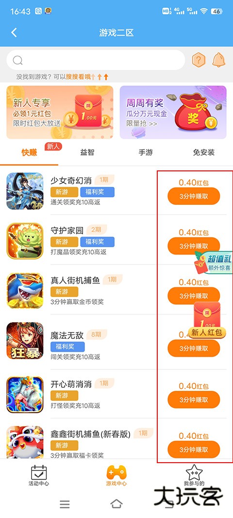 2、不同分区游戏的奖励力度有着不小的区别,我们可以选择合适的游戏点击进入