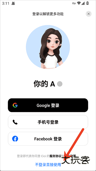 2、用户切换ip后即可不会弹出地区限制的提示了,就可以正常使用了,底部会出现一行【不登录直接使用】的文本,点击即可进入使用了