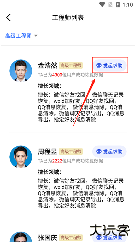 3、选择工程师,然后发起求助即可。