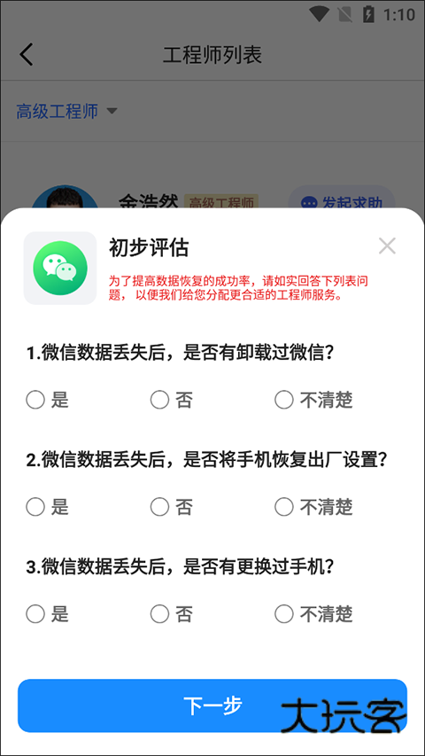 4、这边有一个初步评估,用户需要根据自身的实际情况选择即可了,然后就可以联系进行修复了。