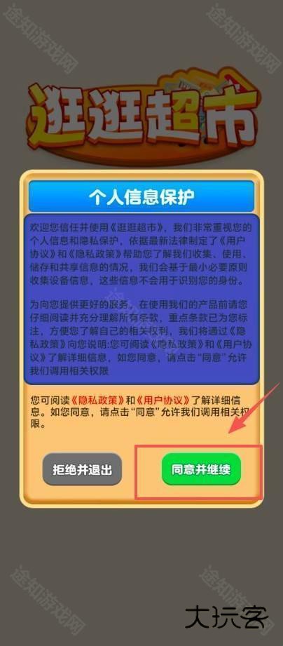 1、本页面点击下载按钮安装《逛逛超市》游戏,启动游戏进入,点击同意并继续!