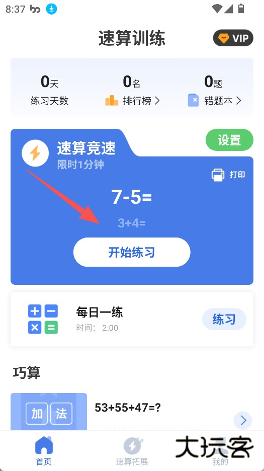 2、找到每日一练,点击练习,按规定时间进行运算训练。