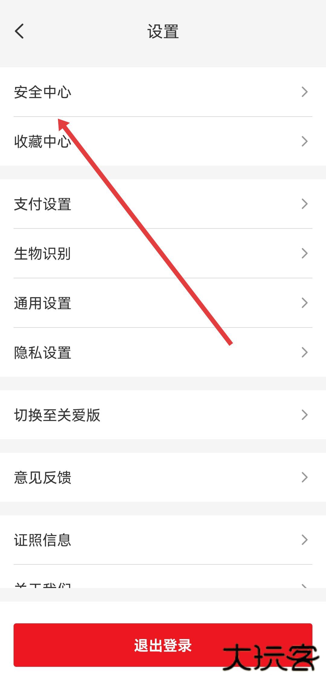 2、在个人账户设置的页面中,需要点击安全中心的选项,跳转至安全中心的页面。
