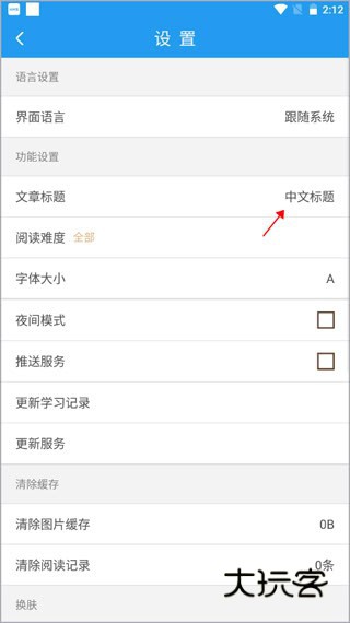 3、能看到其中的功能设置,默认是中文标题,点击文章标题。