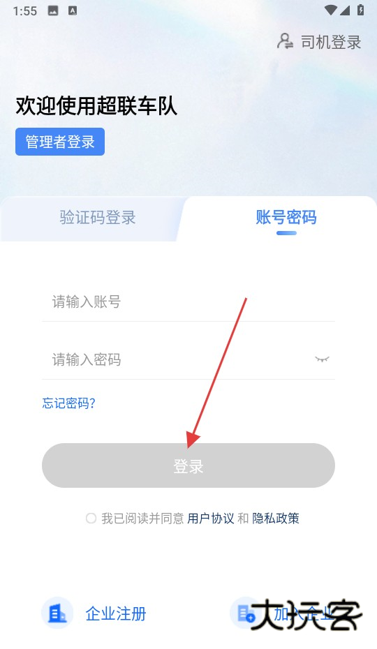 3、填账号密码,勾选协议后点【登录】进入系统。