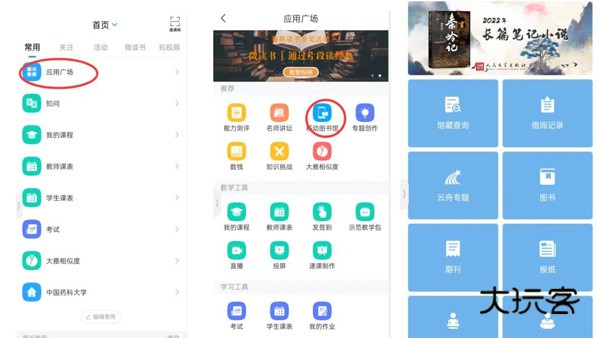 进入首页后,可通过左上角‘邀请码’输入南华大学邀请码‘nhdx’进入南华大学首页,通过首页的‘移动图书馆’进行使用。